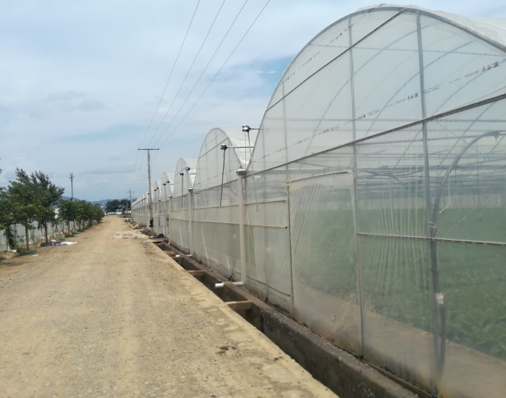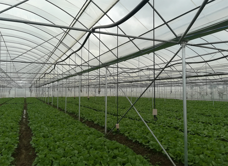 實例概況:智能連棟大棚面積連體棚11.4畝左右:每個跨度長59.4米*寬8米,智能連棟大棚分為兩個區(qū)域監(jiān)測及控制;溫室智能控制功能系統(tǒng)配置:連棟大棚室內(nèi)六個監(jiān)測點,分別監(jiān)測空氣溫度、濕度、光照強(qiáng)度,二氧化碳,土壤溫濕度電導(dǎo)率,土壤酸堿度等;通過采集設(shè)備監(jiān)測的數(shù)據(jù)實時上傳到云服務(wù)器,通過云平臺運(yùn)算分析及聯(lián)動控制,自動控制現(xiàn)場電機(jī)設(shè)備,現(xiàn)場設(shè)備有頂卷膜,側(cè)卷膜,前卷膜,水肥一體機(jī),自動噴藥機(jī)等, 控制系統(tǒng)自動調(diào)節(jié)溫室大棚內(nèi)的環(huán)境指標(biāo)及土壤墑情,確保大棚內(nèi)環(huán)境最適宜基地種植物生長;整套控制系統(tǒng)還包含:視頻監(jiān)控,演示展廳拼接屏.