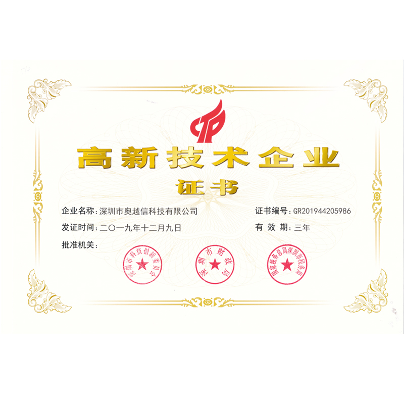 我司已收到了由深圳市科技創(chuàng)新委員會、深圳市財政局、國家稅務總局深圳市稅務局聯合頒發(fā)的“國家高新技術企業(yè)”認定證書,由此正式邁入國家高新技術企業(yè)行列。