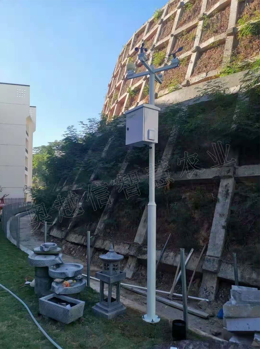 生物園基地還配置了智能氣象站遠(yuǎn)程實時監(jiān)測,包含的指標(biāo):空氣溫度、空氣濕度、光照強度、二氧化碳,大氣壓力,雨量,土壤溫度,土壤濕度,土壤酸堿度;氣象站配置了3.5米立桿,防水智能采集箱等,無線通訊方式,通過手機APP或電腦PC端,可以對基地現(xiàn)場氣象環(huán)境及土壤墑情數(shù)據(jù)遠(yuǎn)程實時監(jiān)測;