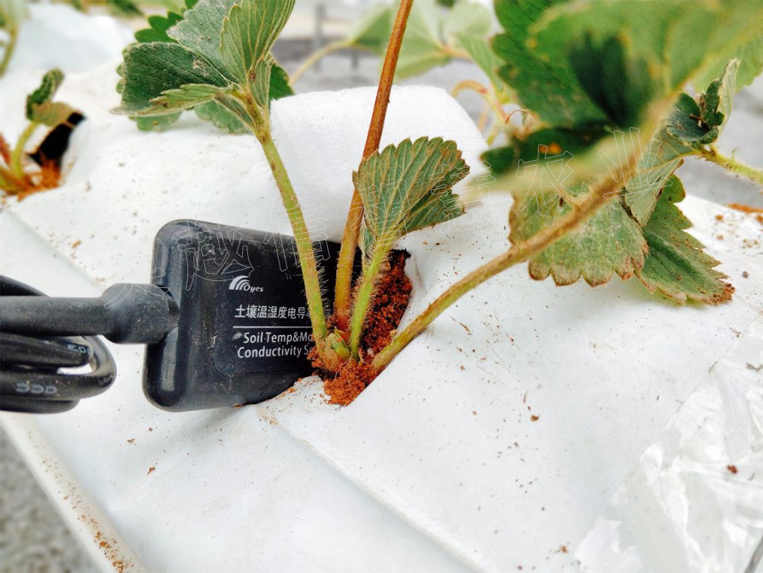 土壤溫濕度EC值三合一傳感器,將采集到的環(huán)境數(shù)據(jù)傳送回控制柜,由控制柜屏幕顯示,同時(shí)數(shù)據(jù)傳送到云平臺和大棚內(nèi)懸掛的LED屏。農(nóng)民可以在任一一個(gè)查看到棚內(nèi)的環(huán)境數(shù)據(jù)。