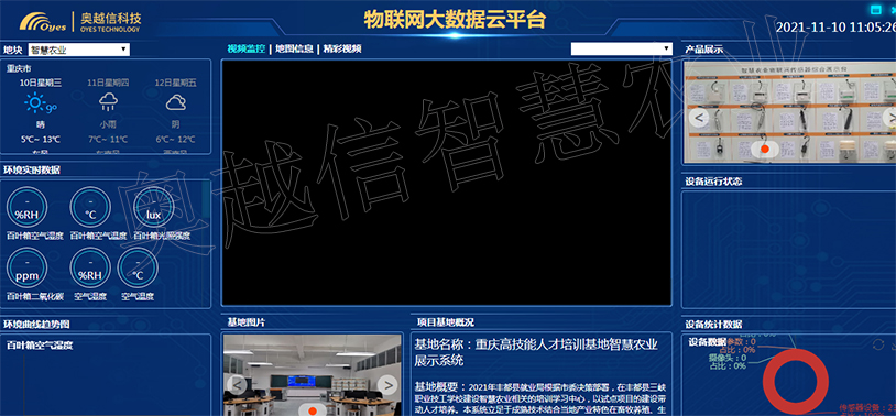 奧越信云平臺大數(shù)據(jù)功能:可以顯示項目當(dāng)?shù)鼐珳?zhǔn)氣象預(yù)報,環(huán)境實時監(jiān)測數(shù)據(jù),環(huán)境數(shù)據(jù)歷史曲線圖,電機運行狀態(tài),電機設(shè)備匯總圖表,項目簡介,項目宣傳輪播圖片,視頻監(jiān)控,地圖信息,宣傳短視頻等;